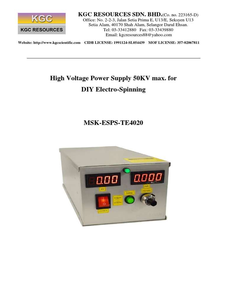 Electrospinning Pdf High Voltage Power Supply